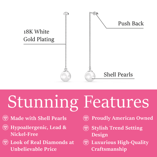 Cate & Chloe Aspen 18k White Gold Plated Shell Pearl Dangle Earrings for Women, Gift for Her
