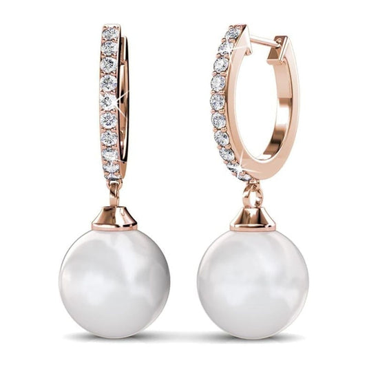 Cate & Chloe Daphne 18k White Gold Plated Pearl Drop Earrings with Swarovski Crystals for Women