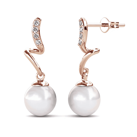 Cate & Chloe Oakley 18k White Gold Plated Drop Pearl Earrings with Swarovski Crystals for Women