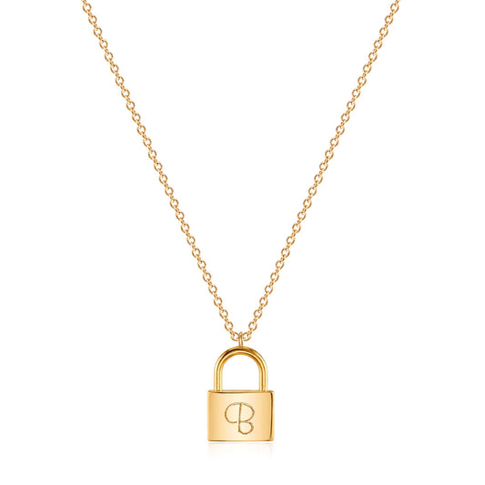 MEVECCO 14K Gold Plated Padlock Letter Pendant Necklace for Women Minimalist Personalized Jewelry