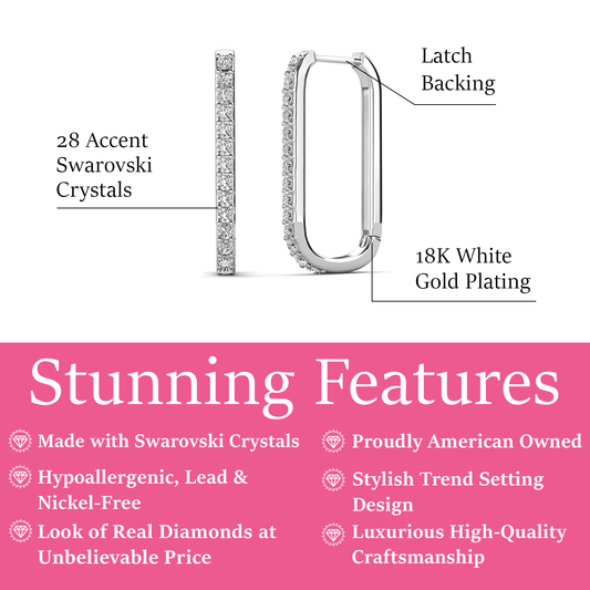 Cate & Chloe Bethany 18k White Gold Plated Hoop Earrings with Swarovski Crystals Gift for Women