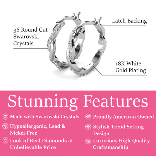 Cate & Chloe Lauren 18k White Gold Plated Twisted Hoop Earrings with Swarovski Crystals for Women