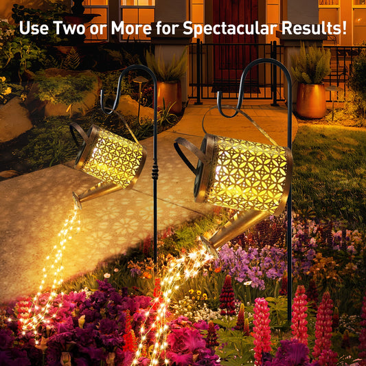 ATUPEN Solar Watering Can with Lights, Outdoor Waterfall Hanging LED Solar Lights for Patio Garden Lawn Yard Pathway