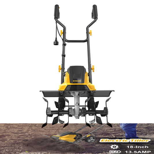 EVEAGE Garden Tiller, 18Inch Electric Cultivator 13.5 Amp 120V, 8" Blade Rototiller for Lawn Digging Soil Tilling Farm Planting,Yellow