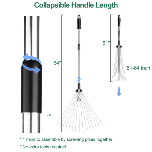 KAMIDA Adjustable Metal Rake for Leaves,Garden Dethatcher Yard Rake,Gardeners World,Expandable Head 8-17"