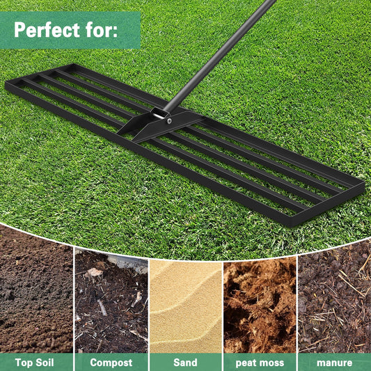 Mr IRONSTONE Lawn Leveling Rake 45 x 10in Stainless Steel Lawn Leveler Tool with 77 inch Handle Sand Gravel Leveler Rake for Yard Garden Ground and Golf Lawn