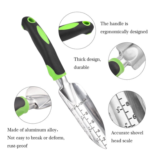 thovorrnl Garden Trowel, Aluminum 11.8in Garden Trowels with Measurement Mark, Hanging Hole, Green