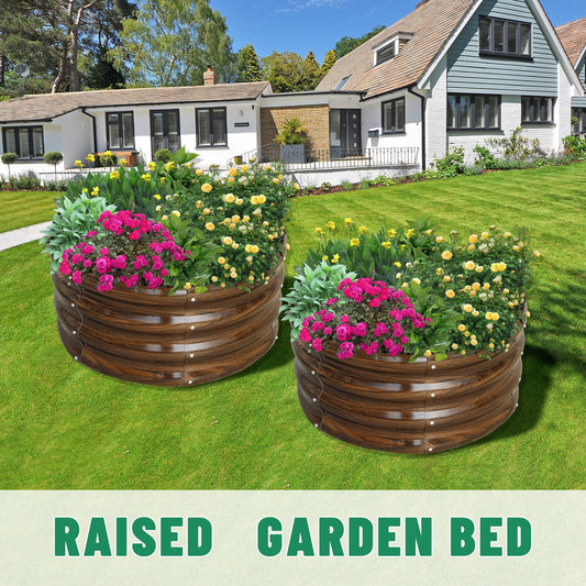 SnugNiture Galvanized Raised Garden Bed, 2Pcs 2x2x1ft Outdoor Raised Beds Kit for Vegetables and Flowers, Brown