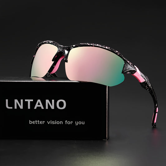 LNTANO Polarized Sports Fashion Glasses for Men and Women, Fashionable Semi-Rimless Design, Ideal for Outdoor Cycling and Off-Road Driving, Available in Two Colors, Flash Pink, Multi-scene Use