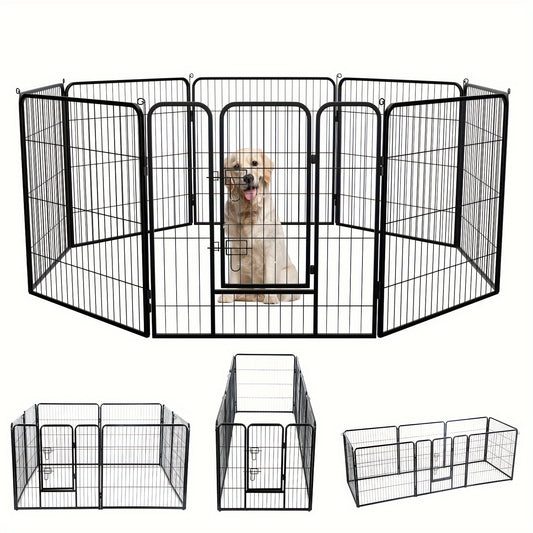 Pet Playpens For Dogs, Foldable Metal Indoor Outdoor Pet Fence Barrier, 8Panels 16 Panels High Exercise Heavy Duty Pet Playpen With Lockable Double Door Dog Fence For Large Medium Small Animals