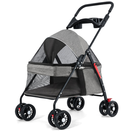 Pet Stroller 4 Wheels Dog Cat Stroller, Pet Folding Stroller, Foldable Dog Cat Cage Jogger Stroller with Storage Basket and Cup Holder, Breathable and Visible Mesh for Medium Small Dogs Cats