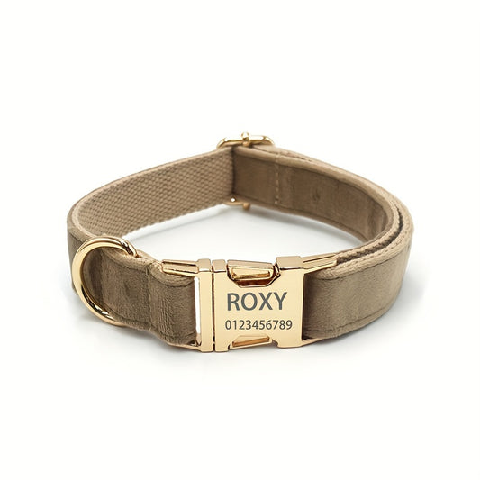 [Fashionable Pet] Personalized Velvet Dog Collar | Engraved Name & Phone ID Tag | Gold-Plated Zinc Alloy Buckle | Soft, Durable Pet Accessory for Small to Large Dogs | Stylish Multi-Color Options | Secure & Quick Release, Secure Dog Collar | Elegant Pet W