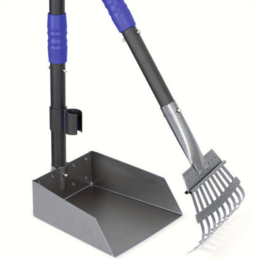 Stainless Steel Dog Pooper Scooper Set, Durable, Rust Proof Tray And Rake Set, Pet Waste Removal Scoop With Adjustable Handles, Easy To Clean, Ideal For All Breeds