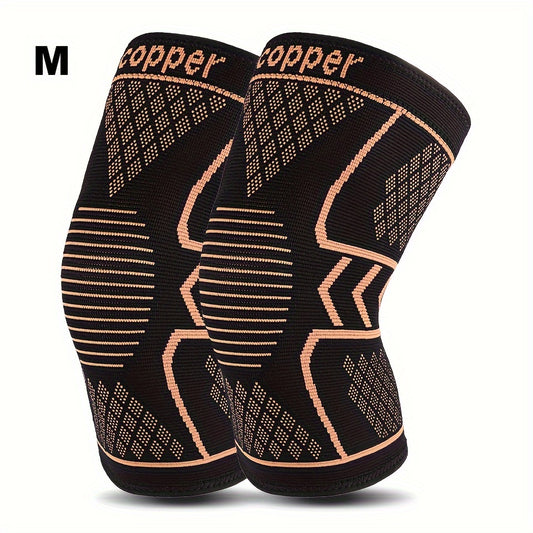 Breathable Copper 2pcs Compression Knee Sleeve - Anti-Slip Knitted Knee Support Brace with Patella Stabilizer