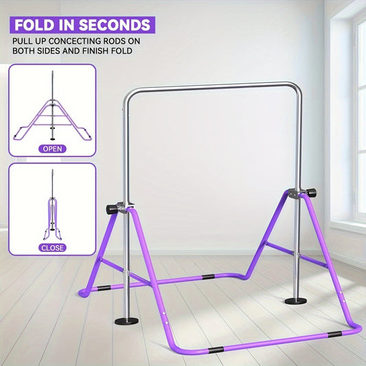 Gymnastics Bar for Kids with Rings, Adjustable Height Gymnastic Horizontal Bars, Junior Training Bar Children Folding Training Monkey Bars for Home Using