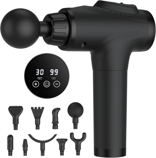 Massage Gun, Muscle Massage Gun for Athletes Handheld Electric Deep Tissue Back Massager, Percussion Massage Device for Pain Relief with 30 Speed Levels 9 Heads,Father's Day Gifts