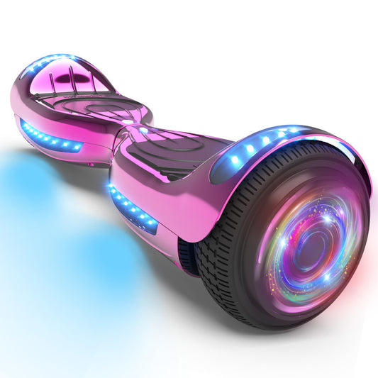 Hoverboard with Wireless Speaker, Design and Chrome Color Self-Balance Scooter Flashing Wheel with Led Lights, Motor120W (60W x 2wheels), Rating: 25.2VDC, 2AH, 50.4Wh, Max speed:14km/h, Maximum:75kg/165lb