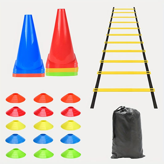 Durable Agility Ladder Training Kit with Cones, Resistance Parachute & Nylon Webbing - PE Material