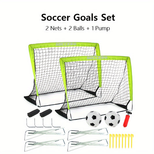 2 portable football goal sets of 4 X 3 feet, including 2 goals, 2 footballs, 1 pump, 1 storage bag, 450D Oxford cloth, pop-up design, easy to carry, the best gift for family and friends