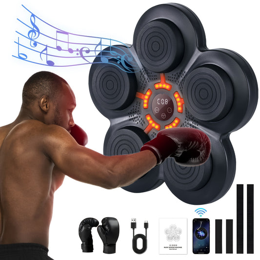 LOVEWE Music Boxing Trainer with Gloves - Interactive Fitness & Reflex Training Gear for Adults, USB Rechargeable, Wireless-Enabled, Wall-Mounted Boxing Target with LED Lights & Sound, Home Workout Equipment