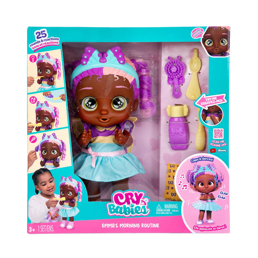 Cry Babies Emma's Morning Routine Interactive 13.6" Baby Doll with 25+ Baby Sounds and Interactive Accessories