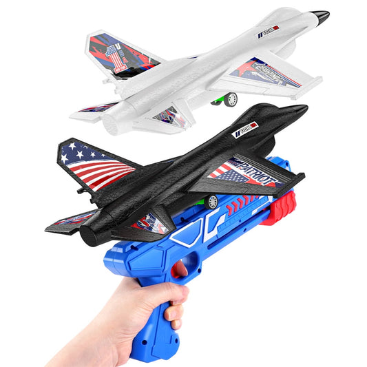 Growsly Catapult Airplanes Launcher Toy, 2 LED Throwing Foam Gliders with Launchers for 4 5 6 7 8 9 10 11 12 Years Old Kids Boys&Girls, Blue and Orange