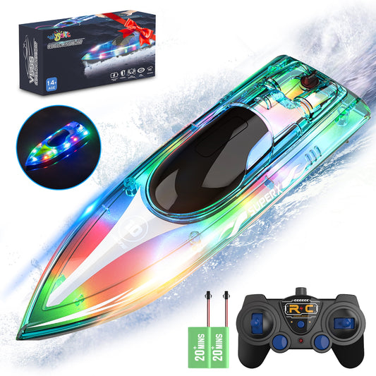 Wisairt RC Boat, 15+Km/h Remote Control Boat with LED Lights for Pools and Lakes, 2.4GHz High Speed RC Boat with 2 Rechargeable Batteries, Perfect Summer Water Toys for Ages 10+ (Blue)