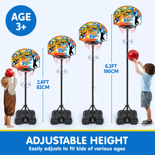 JOYFY 2.8 ft-6.2 ft Adjustable Kids Basketball Hoop with 4 Balls Toddler Baksetball Goal Toy Indoor Outdoor Basket Ball Game Set for Boys Girls Age 3 4 5 6 7 8 Gift
