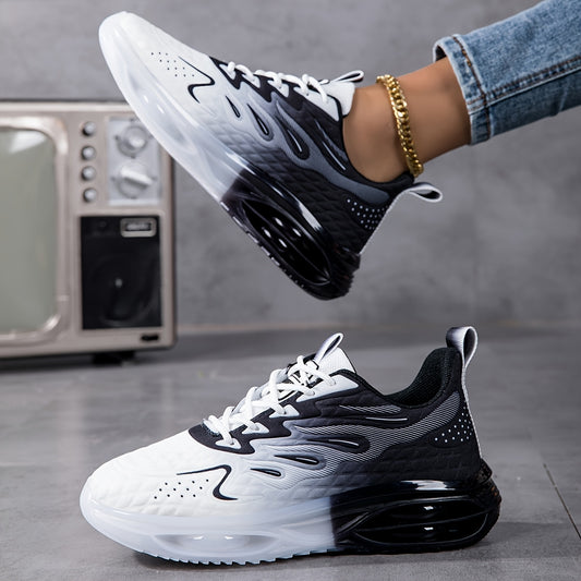 1 Pair Women'S Fashion Geometric Casual Sneakers - Breathable Fabric Running Shoes with Rubber Sole, Lace-Up Low Top Design for Outdoor Activities, All-Season Comfort