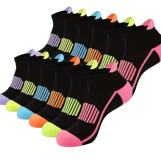 6 Pairs/12 Pairs Colorful Spliced Open Mouth Sports Socks