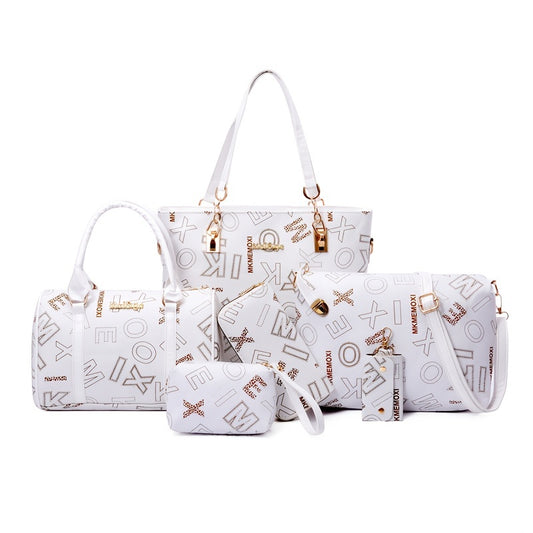 Women's Fashion Retro Letter Print Shoulder Bag, Handbag, Wallet, Key Bag, Six-piece Set, Commuting, Casual, Shopping, Tote Bag, Women's Bag Set