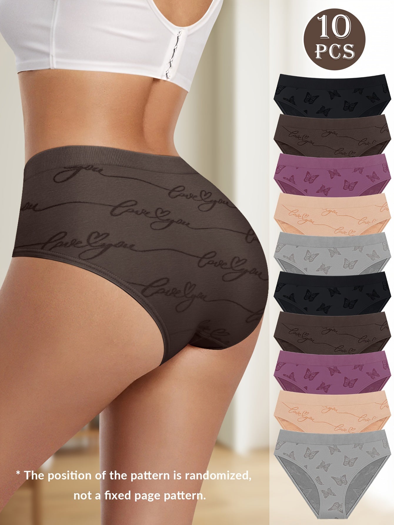 10pcs MIOTAN Women's Elegant Butterfly Pattern Nylon Briefs, Soft and Comfortable, Non-Transparent - Machine Washable
