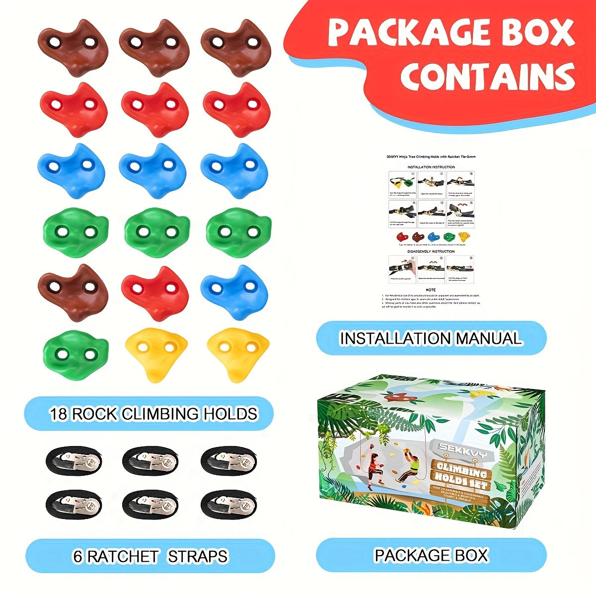 18 Ninja Tree Climbing Holds and 6 Sturdy Ratchet Straps for Kids Tree Climbing, Large Climbing Rocks for Outdoor Ninja Warrior Obstacle Course Training