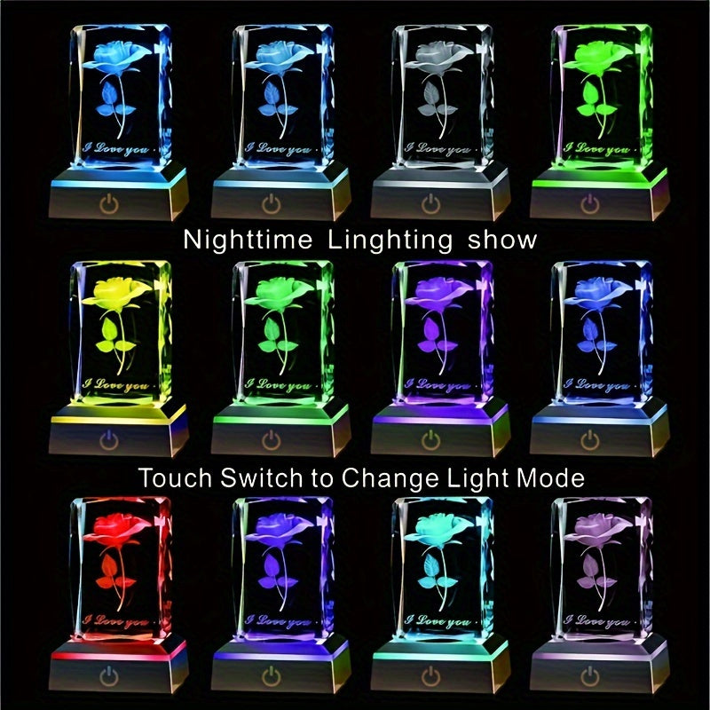 1pc 3D Rose Crystal with LED Lights, Mother'S Day Gift, Birthday Gift for Girlfriend, Wife, Mother, Friendship And Love to Commemorate The Unique Anniversary Rose Christmas Halloween Family Bedroom Party Decorations
