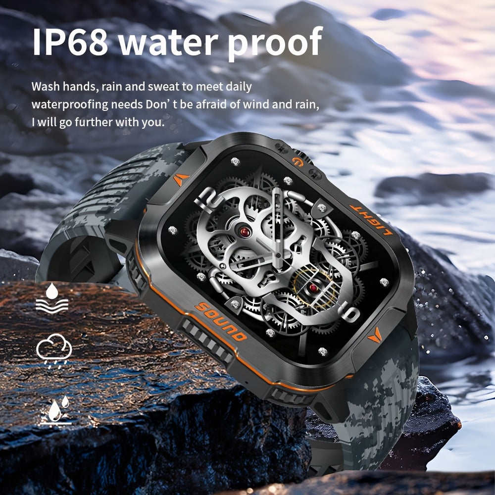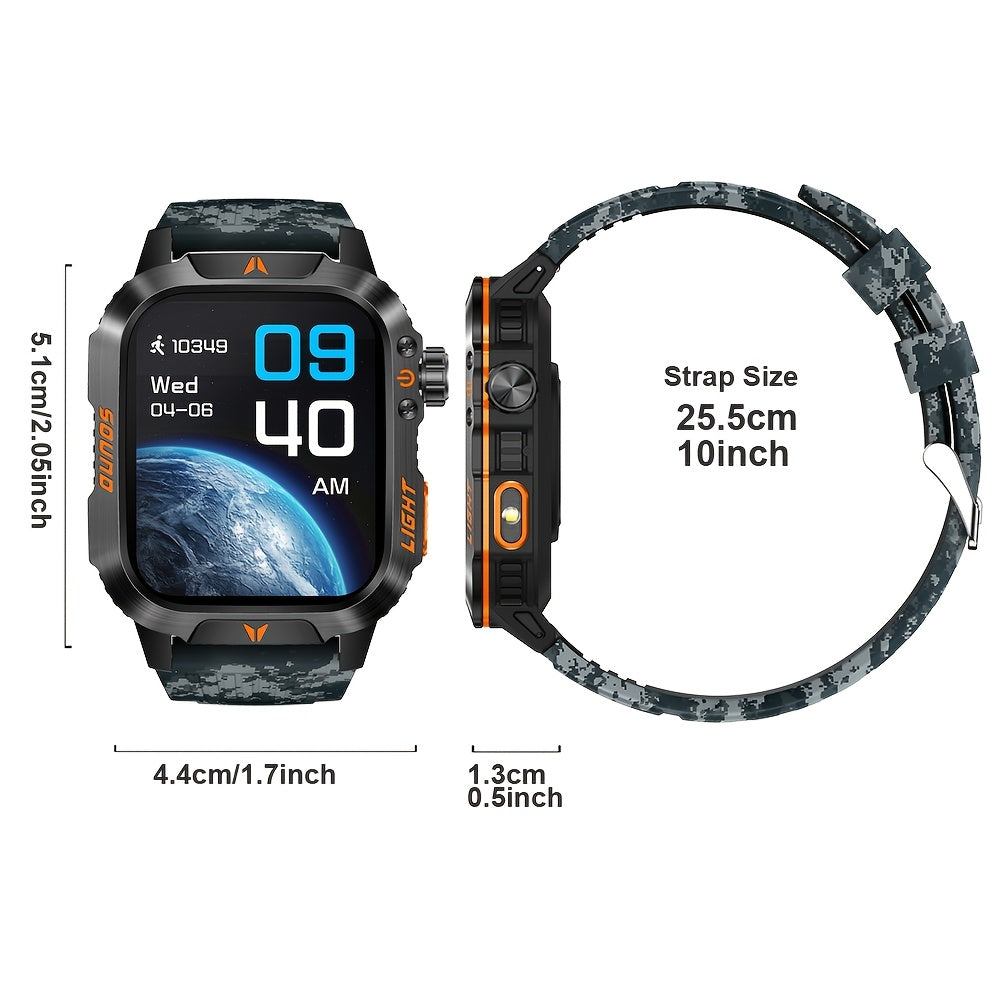 1pc Men's Smart Watch with LED Flashlight, Compass, Sleep Monitor, Fitness Tracker -, Tactical Sports Wristwatch, USB Charging, 2.01" IPS+TFT Display, Alarm Clock, Deployant Clasp, Wireless 5.0, Zinc Alloy, Rechargeable Lithium Polymer Battery, Answer/mak