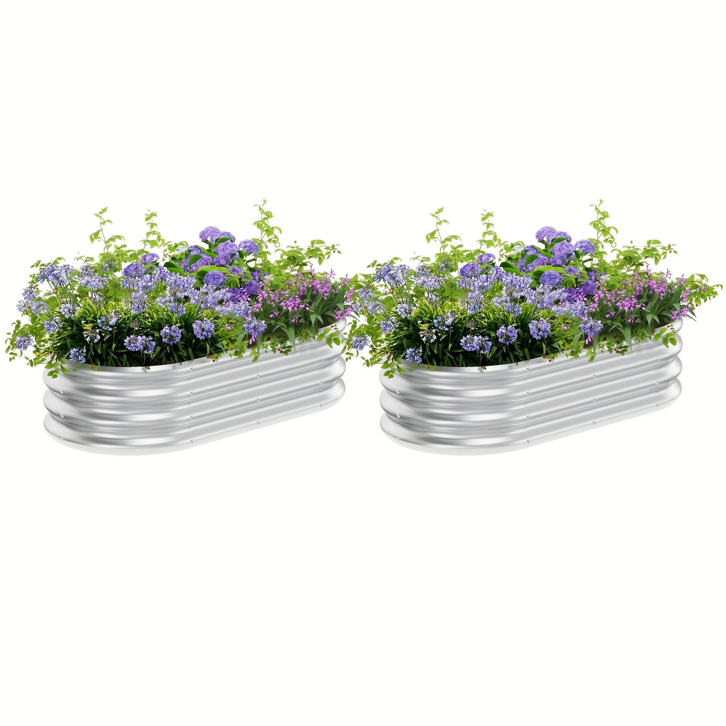 2 Packs 2×2×1ft/6×3×1ft/8×3×1ft Galvanized Raised Garden Bed Kit, Garden Planting, Outdoor Galvanized Flowerpot Garden Box, Round and Oval Large Metal Vegetable Box. Resistant Galvanized Design for Year-round Gardening Success