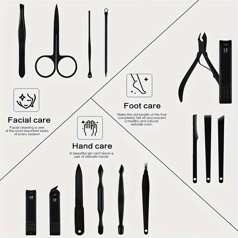 24pcs Stainless Steel Manicure & Pedicure Kit - Portable Nail Clippers, Ear Spoons, Foot Sharpeners & Eyebrow Trimmers with Storage Case, Nail Tech Supplies