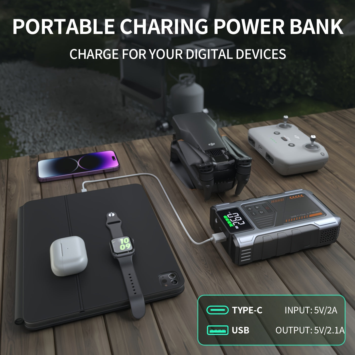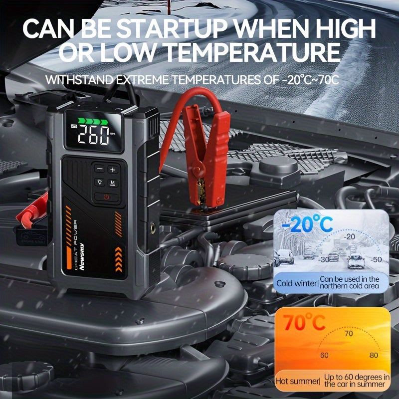 2500A Portable Car Jump Starter with 150 PSI Tire Inflator, Dual USB/USB-C Charging, Digital Display, Insulated Material, for 12V Batteries, Fits 2.11gal Gas & 1.72gal Diesel Engines, Compact & Versatile Design, Multiuse Jump Starter | Modern Design | Dur