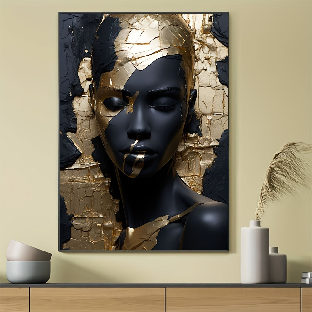 2D 1pc Canvas Wall Art Print Modern Black and Golden Portrait Canvas Wall Art for Bedroom, Living Room, and Corridor, Gift Ready to hang Wooden Frame - Thickness 1.5inch