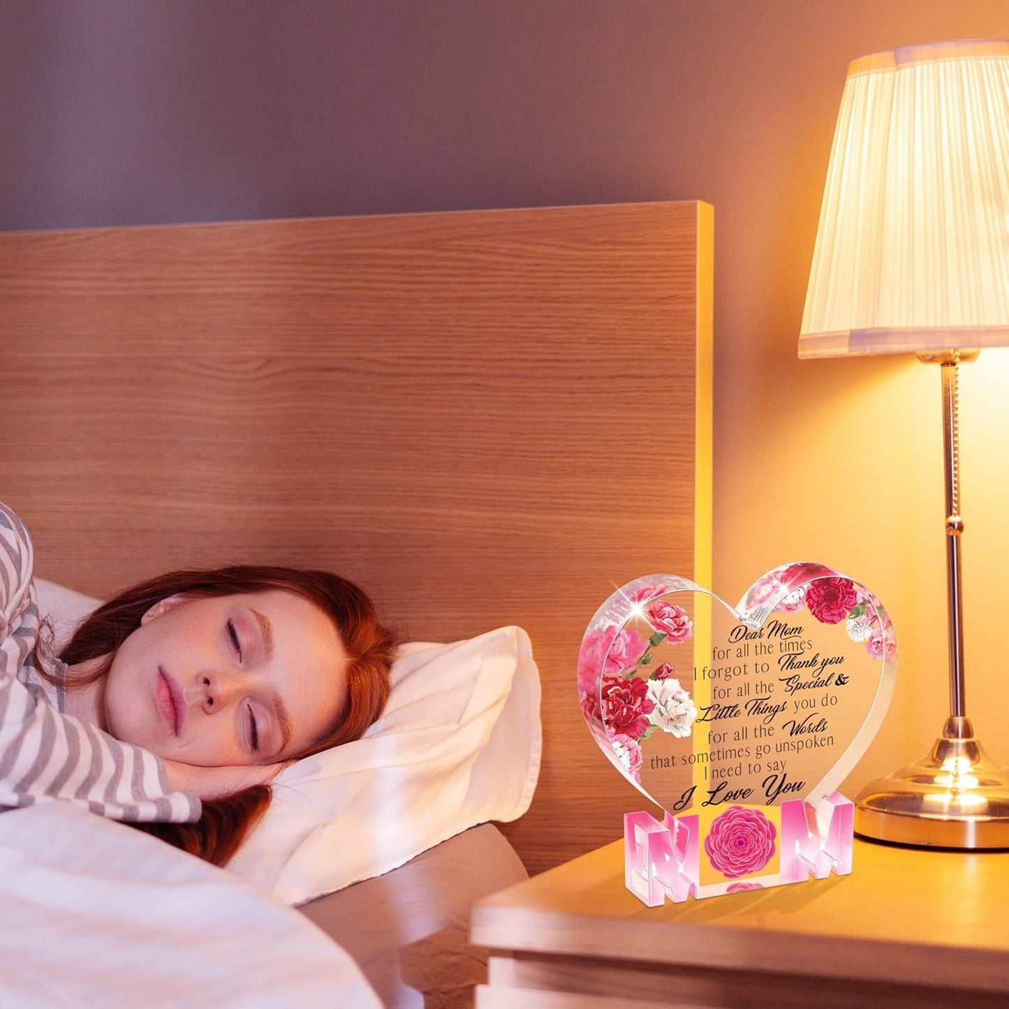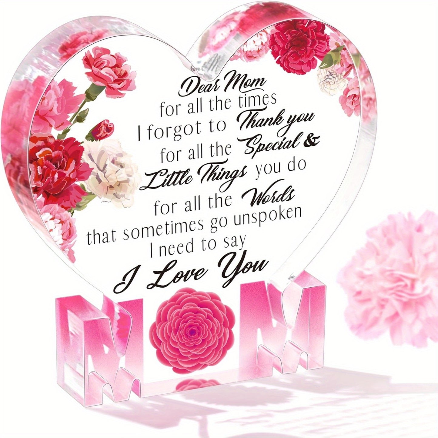 2D Flat - To Dear Mom Exquisite Carnation Acrylic Heart Decorative Plaque Tabletop Display, Mothers Day Gift for Mom from Daughter, Thank You Love You Mom, 5.9 x 5.9 inch Paperweight Keepsake Present for Mom, Valentines Birthday New Year Gift