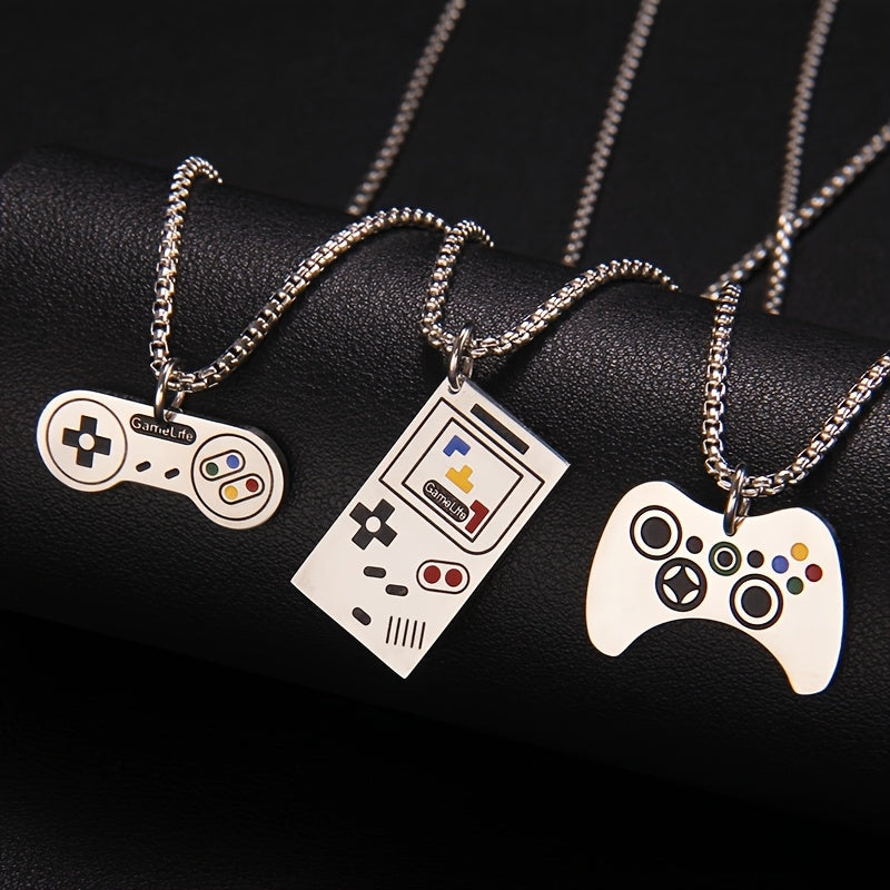 3pcs Stylish and Handsome Stainless Steel Game Controller Pendant Necklace, the best gift for family and friends