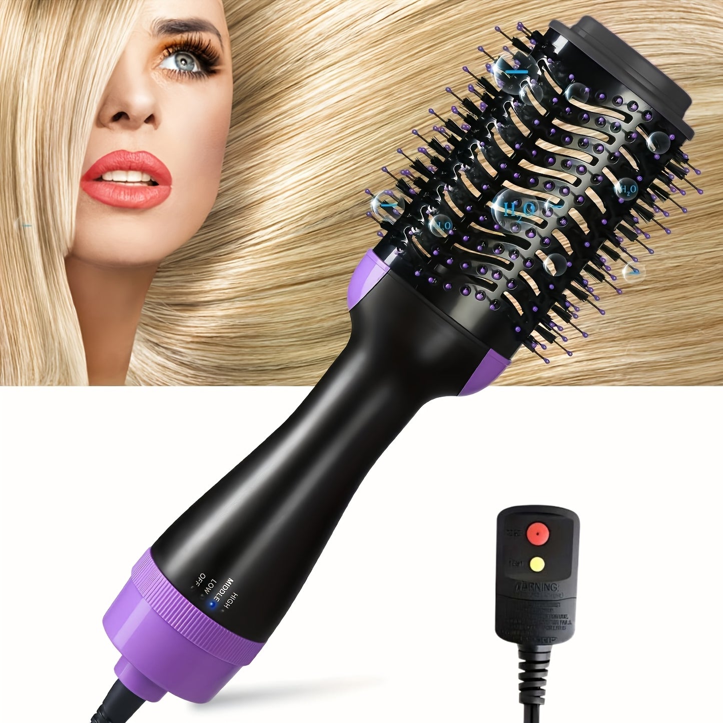 4-in-1 Hot Air Brush Hair Dryer with Negative Ions, Adjustable Temperature, Ergonomic Handle - Reduces Frizz and Static for All Hair Styles, Blower Brush