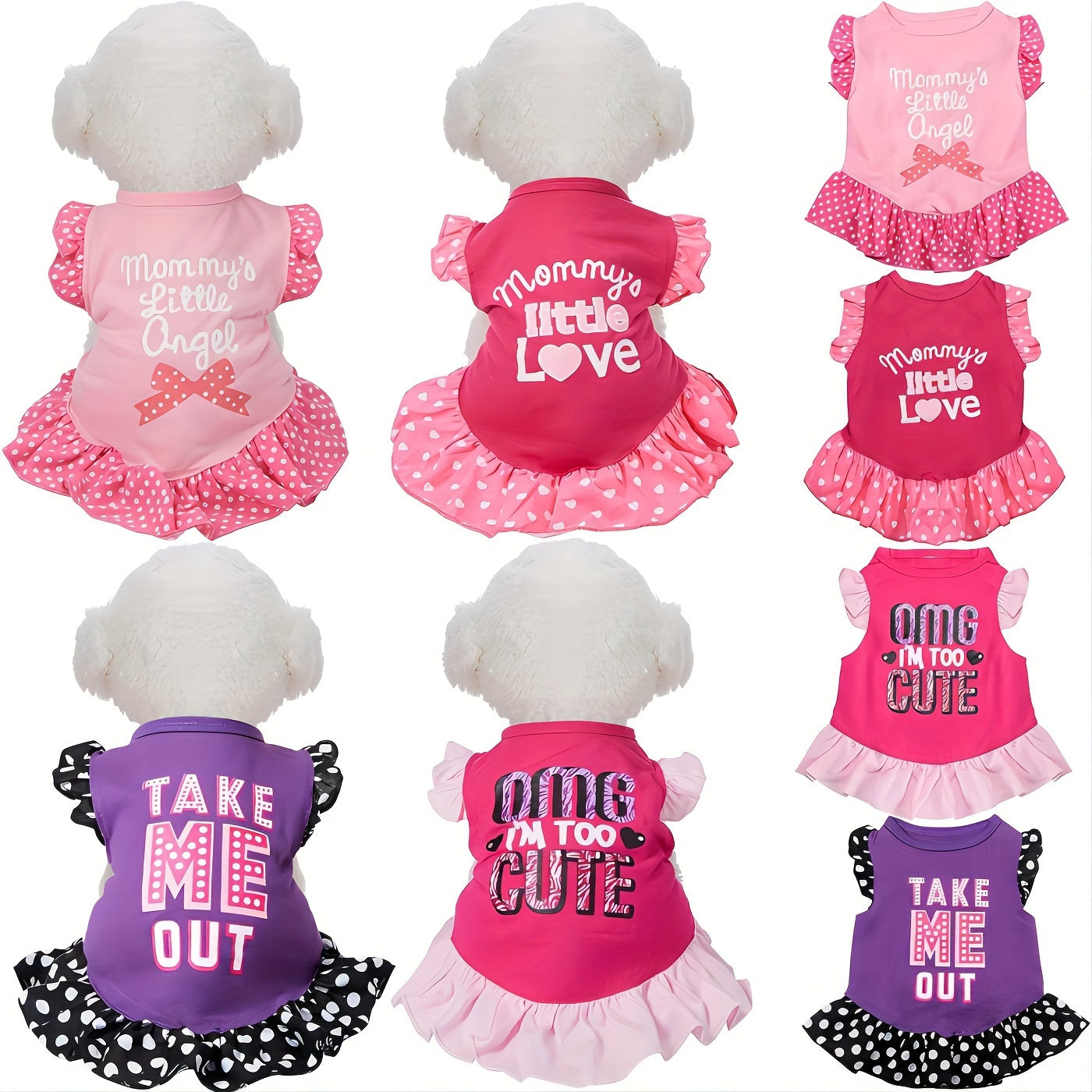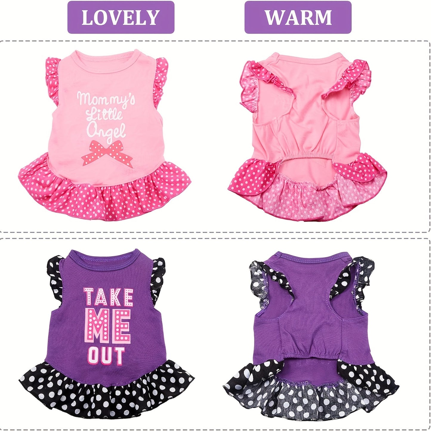 4pcs Adorable Dog Dress Shirts with Ruffles - Soft, Breathable Fabric Pet Sundresses in Pink & Purple Polka Dots, Cute "Mommy's Little Angel" & "I Love You" Messages for Small to Medium Dogs & Cats - Perfect for All Seasons, Dog Clothes
