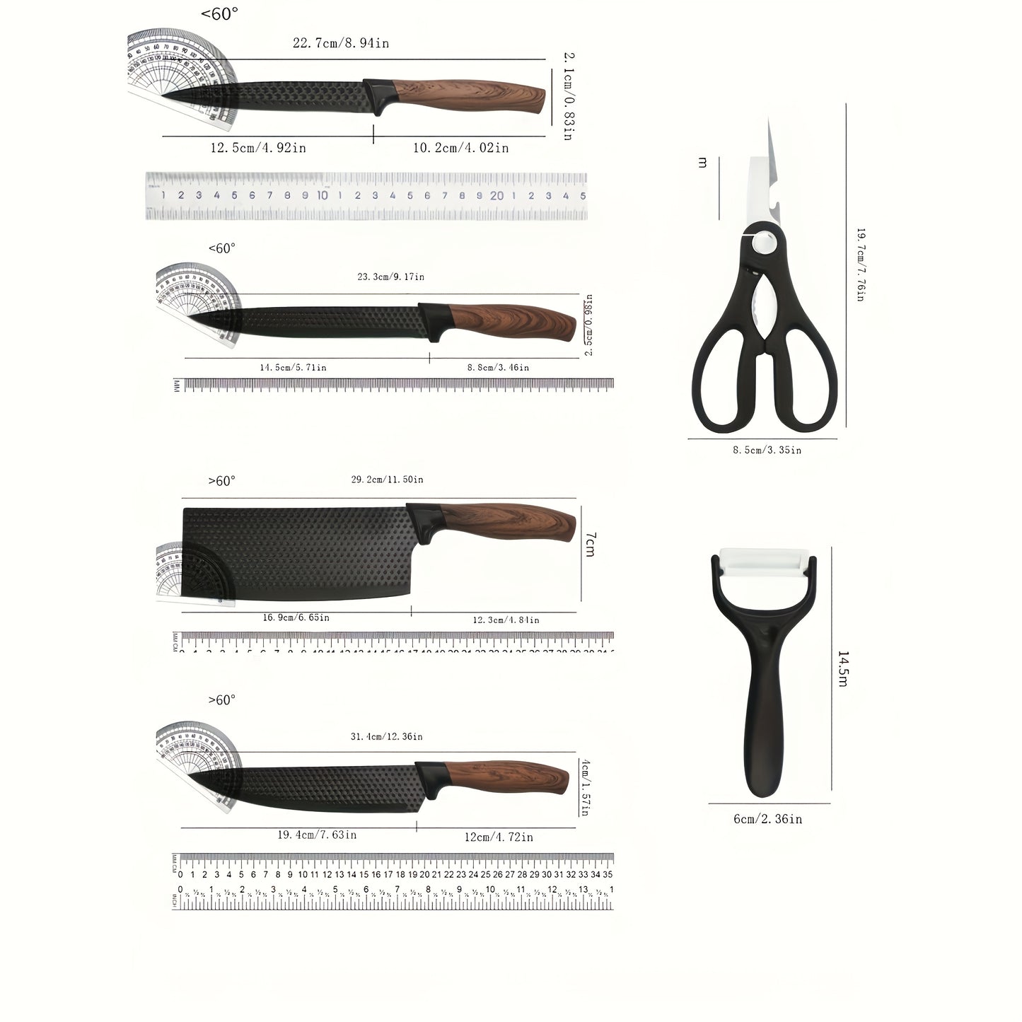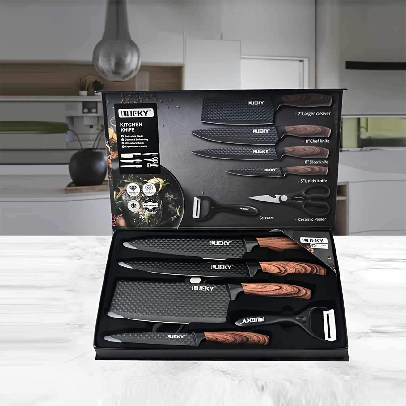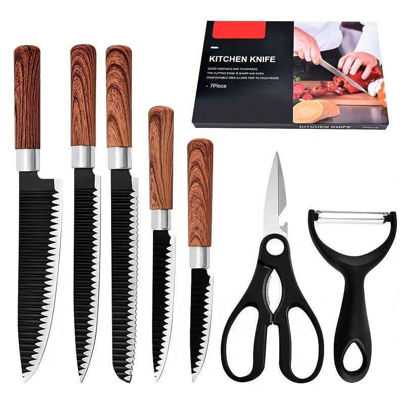 6/7/8pcs, Premium High Carbon Stainless Steel Knife Set Including Chef's Knife, Bread Knife, Scissors, Knife Sharpener, Durable, Rust Resistant, Easy to Clean Kitchen Essentials