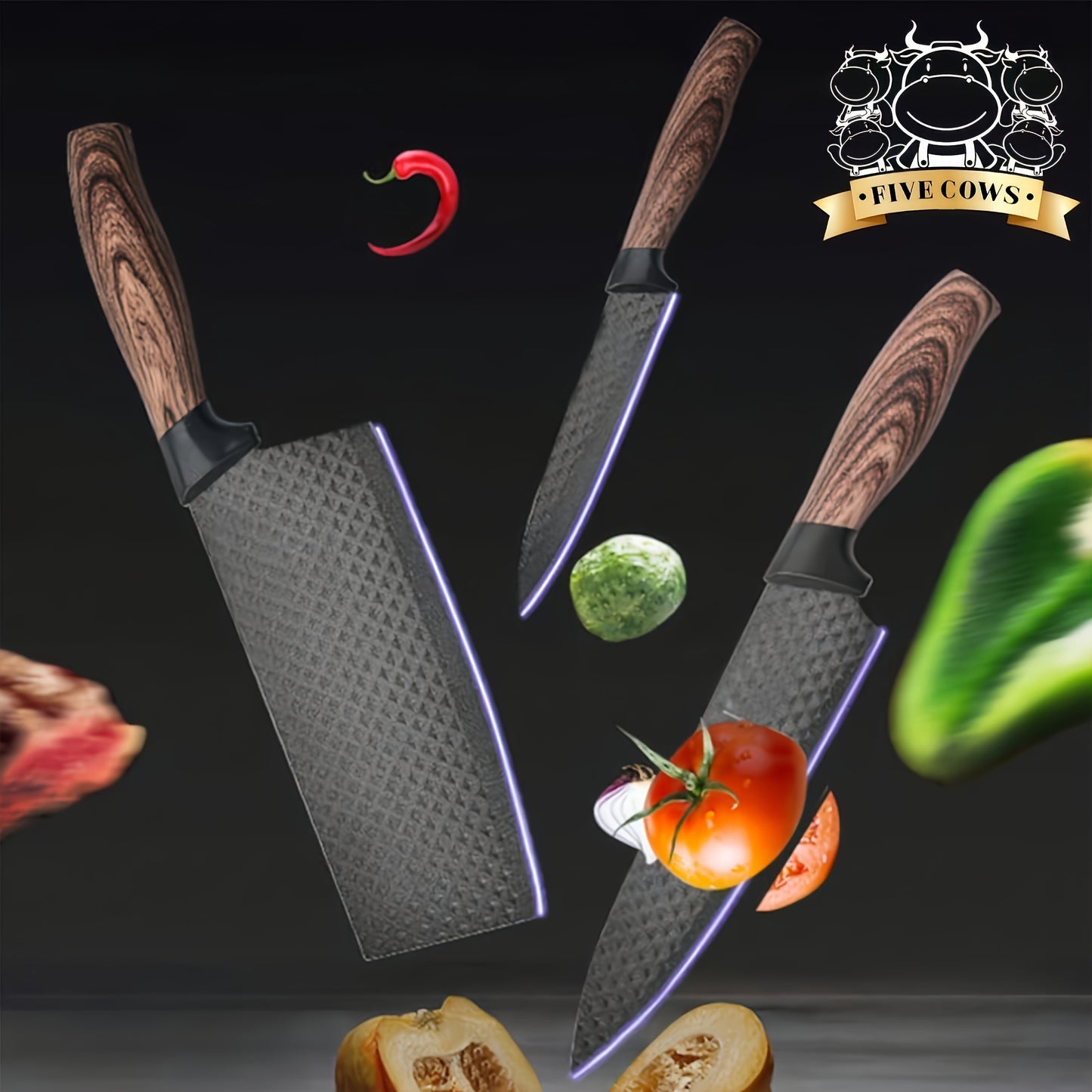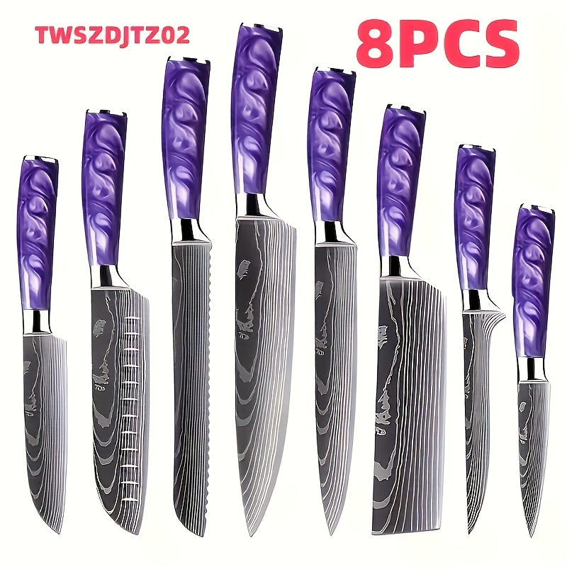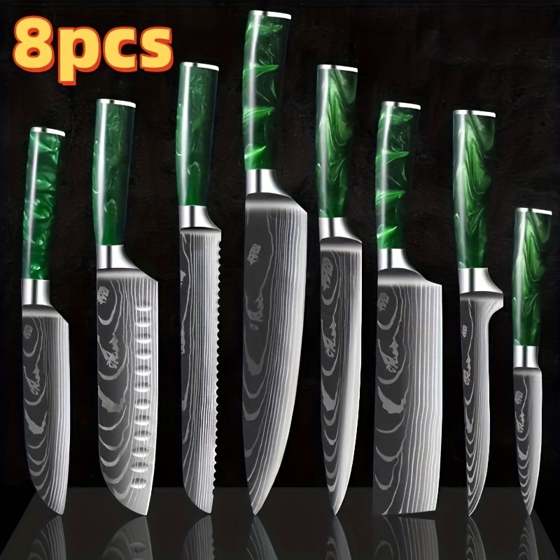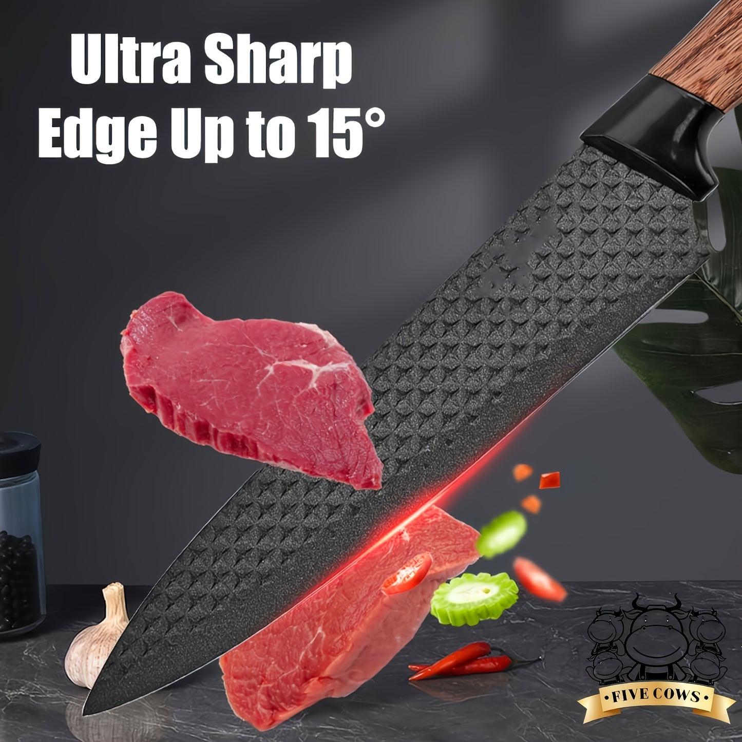 6/7/8pcs, Premium High Carbon Stainless Steel Knife Set Including Chef's Knife, Bread Knife, Scissors, Knife Sharpener, Durable, Rust Resistant, Easy to Clean Kitchen Essentials