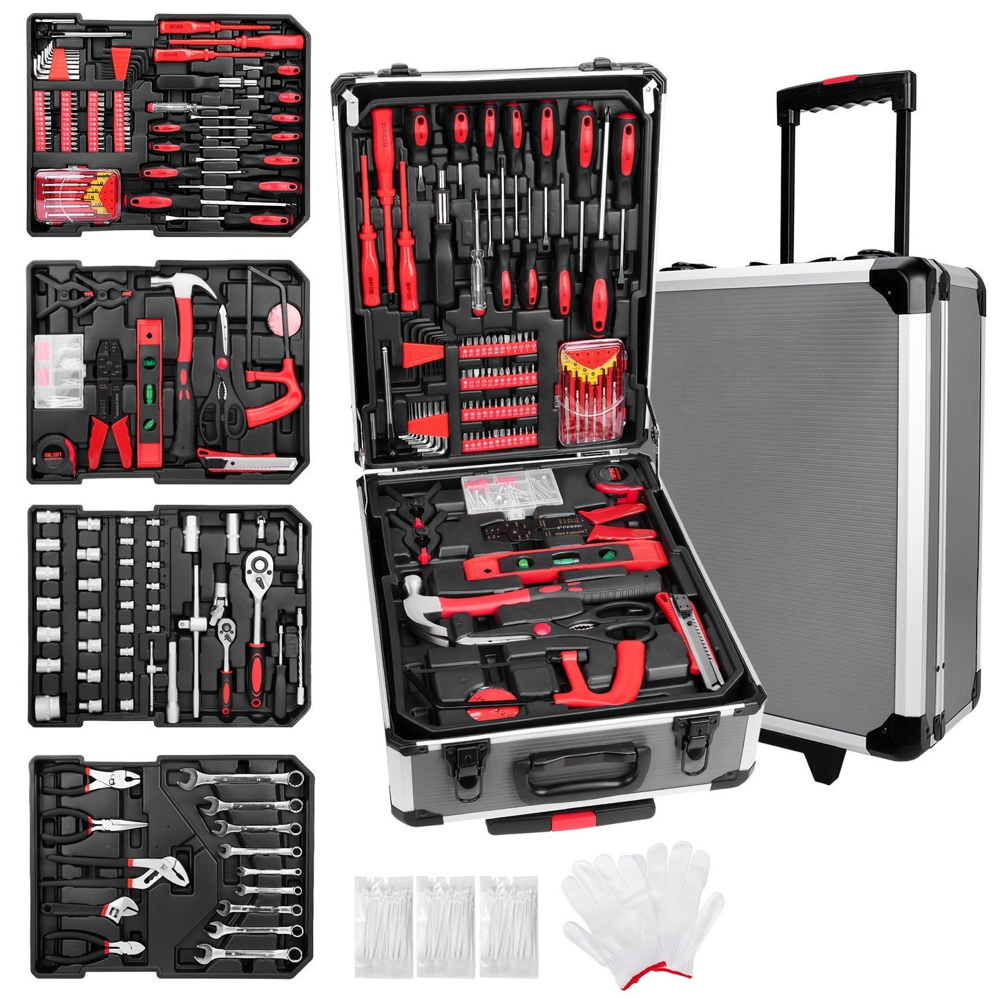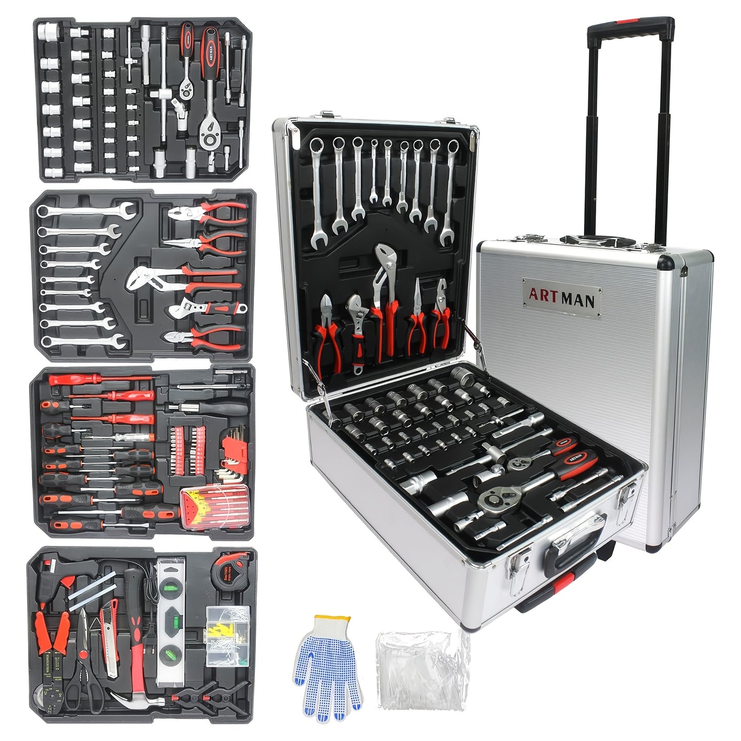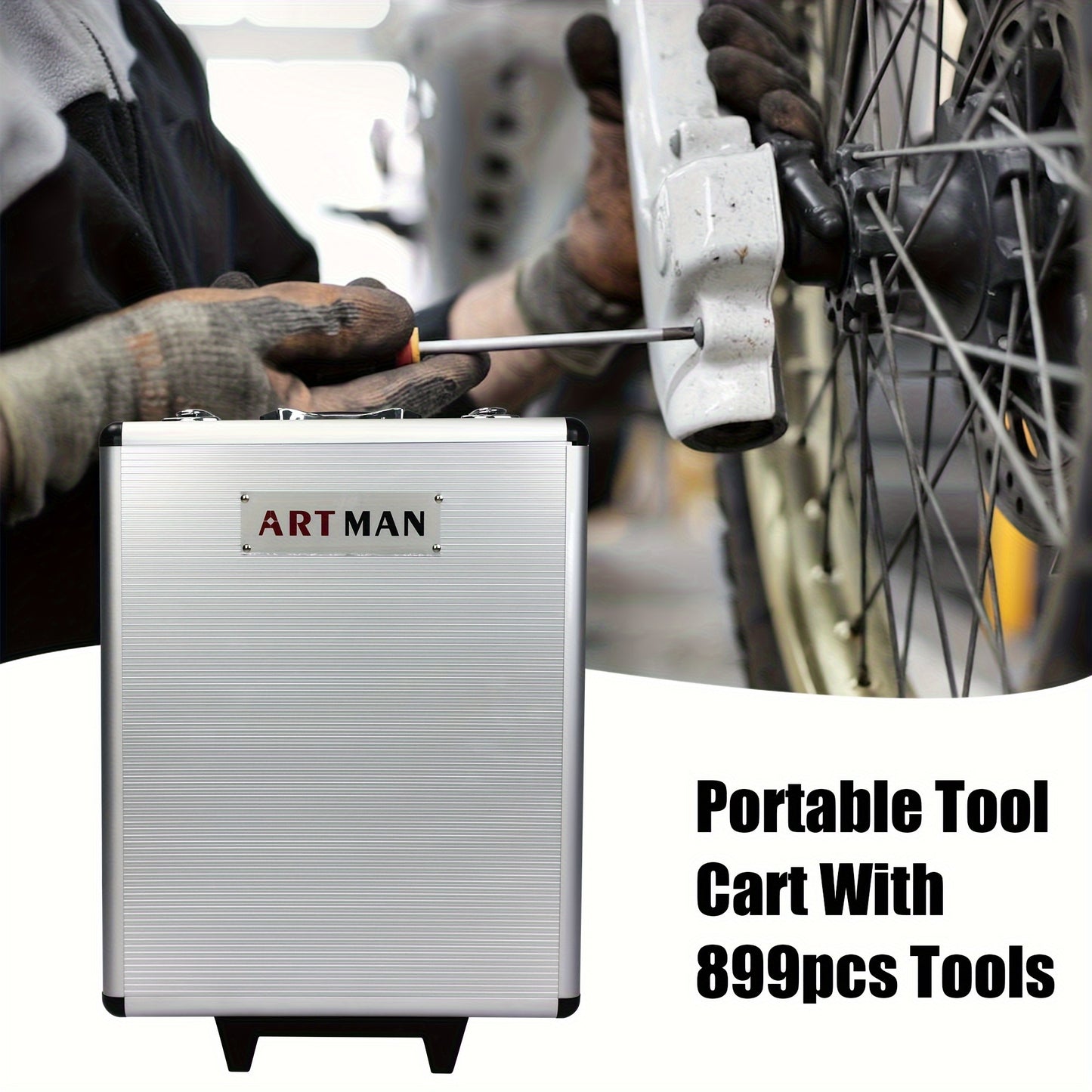899pcs ARTMAN Hand Tool Set in Durable White Metal Box with 4 Layers, Portable Design & Wheels - Ideal for Home & Car Maintenance, Includes Sockets, Wrenches, Screwdrivers & More, Tool Box
