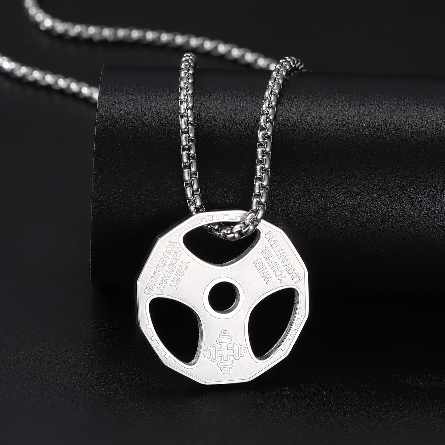 Weight Necklace for Men: This fitness dumbbell necklace jewelry gives you a totally fresh impression. The gym necklace men is suitable for you to attend special occasions, such as dinner party,birthday party and so on. The dumbbell pendant could go with any outfit you choose. You will surely get tons of compliments on multiple occasions
