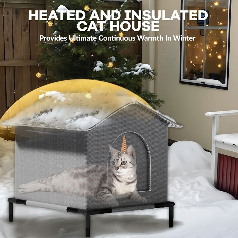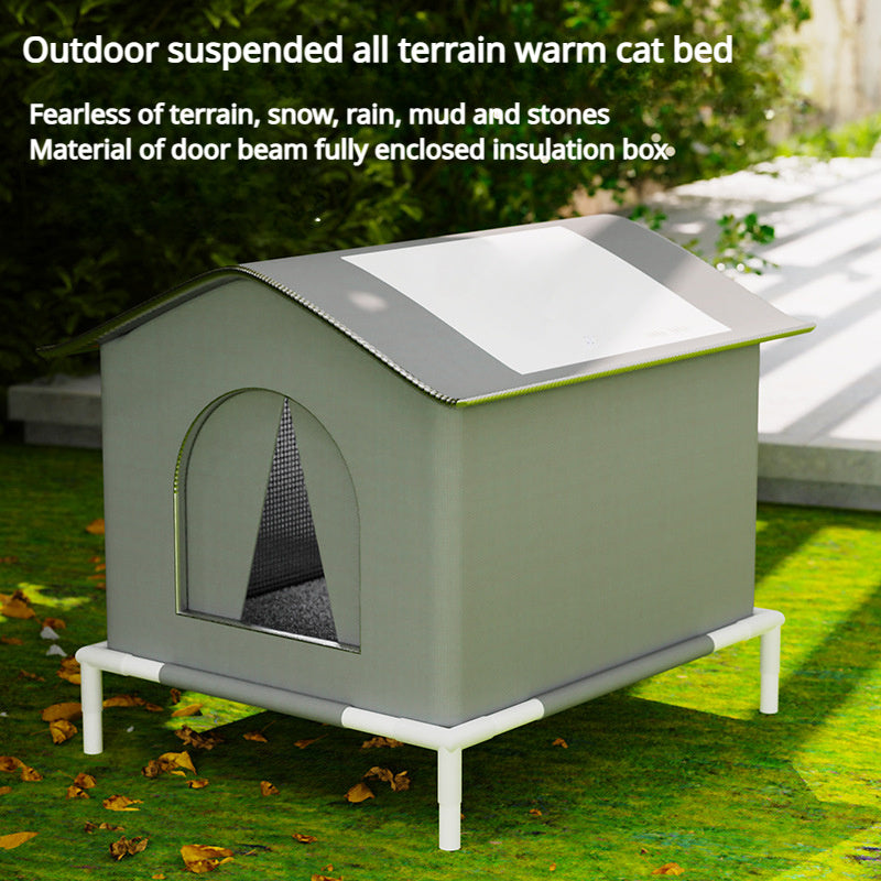 All-Season Outdoor Cat House with Stand - Waterproof & Cold-Resistant Oxford Fabric, Includes Warm Mat, Spacious Enclosed Tent for Cats