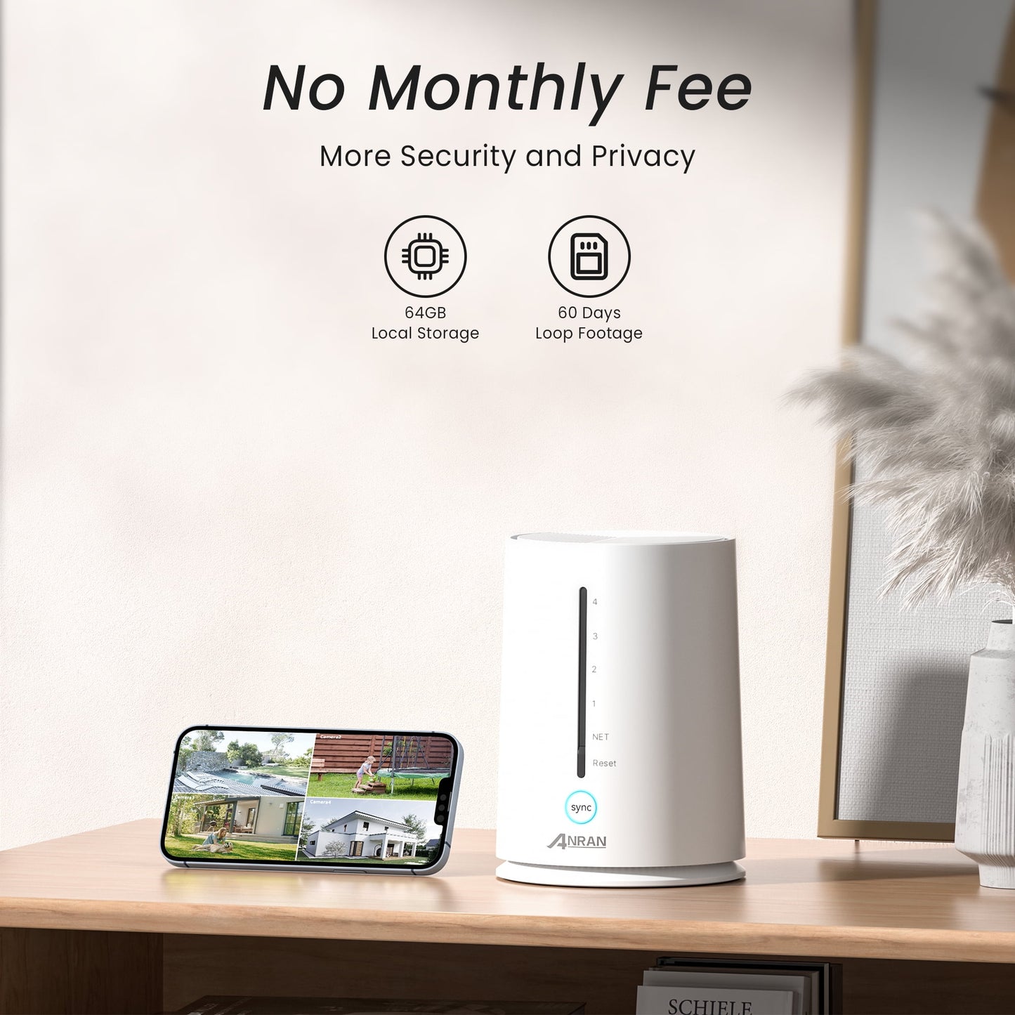 - No Monthly Fee, 64GB Local Storage: Wireless Cam Pro system Built-in 64GB EMMC storage, free to playback and download every motion detection video which happened during the last 120 days(4 months). All video data are encrypted and saved locally.