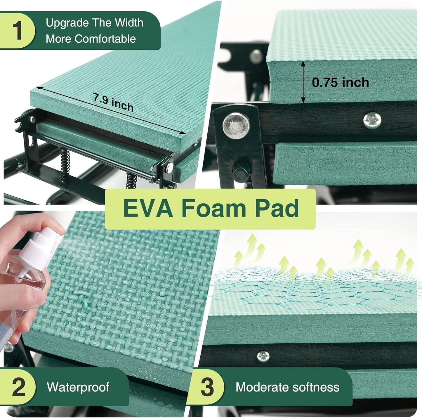 The folding design is carried out by a durable spring lock, so it is very easy to open and close this garden knee seat. With just one tap, you can unfold and fold the large kneeling stool back within a few minutes.